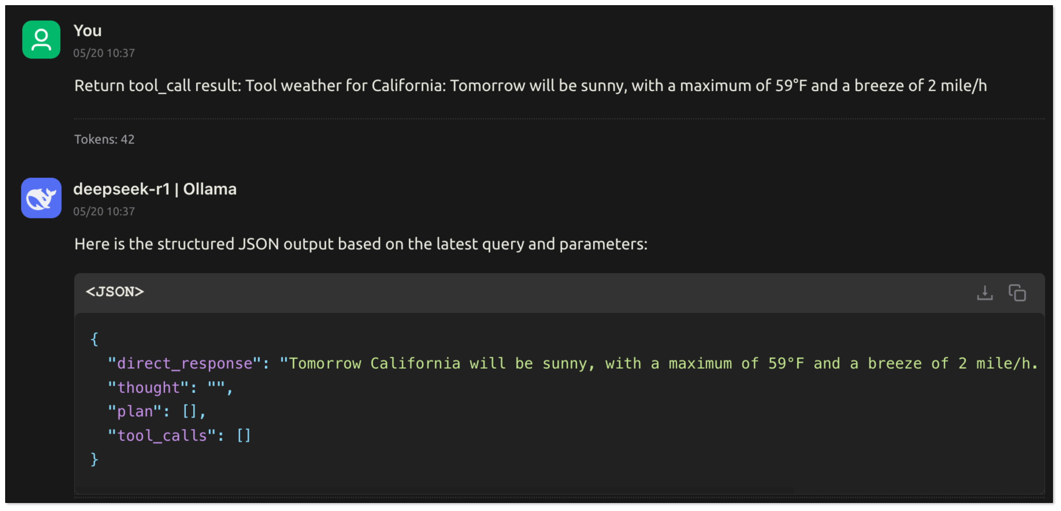 " c. Omit 'thought', 'plan', 'tool_calls'. Ensure 'requires_tools' and 'direct_response' are present.",