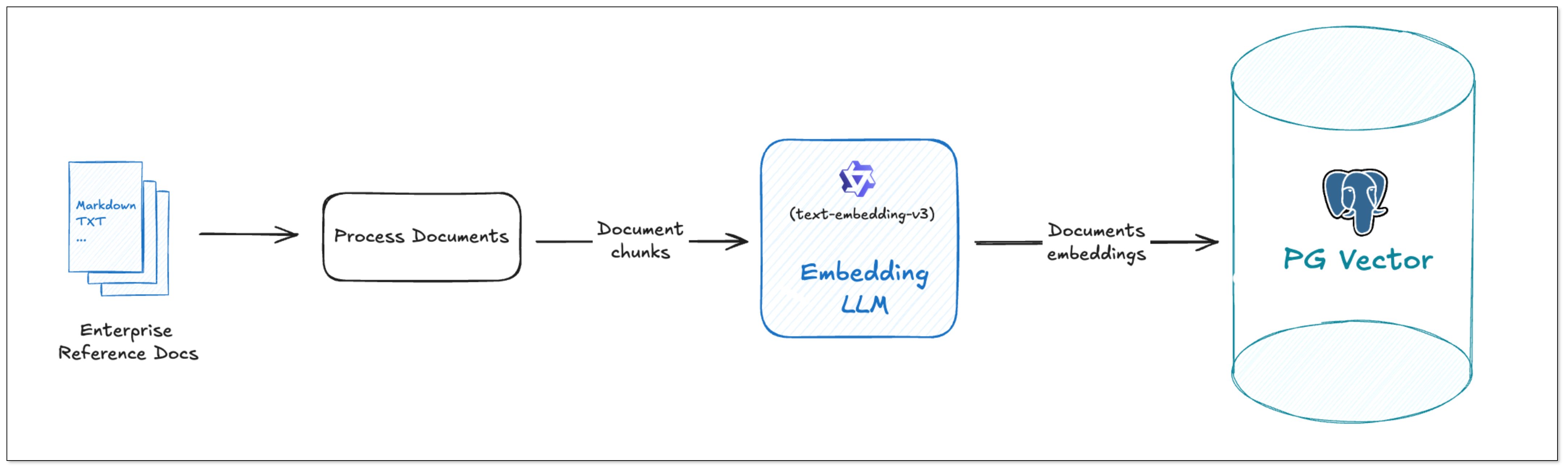 - Build a knowledge base: Take your documents, slice them into smaller parts, and turn them into vectors. Store them in a vector database like PGVector.