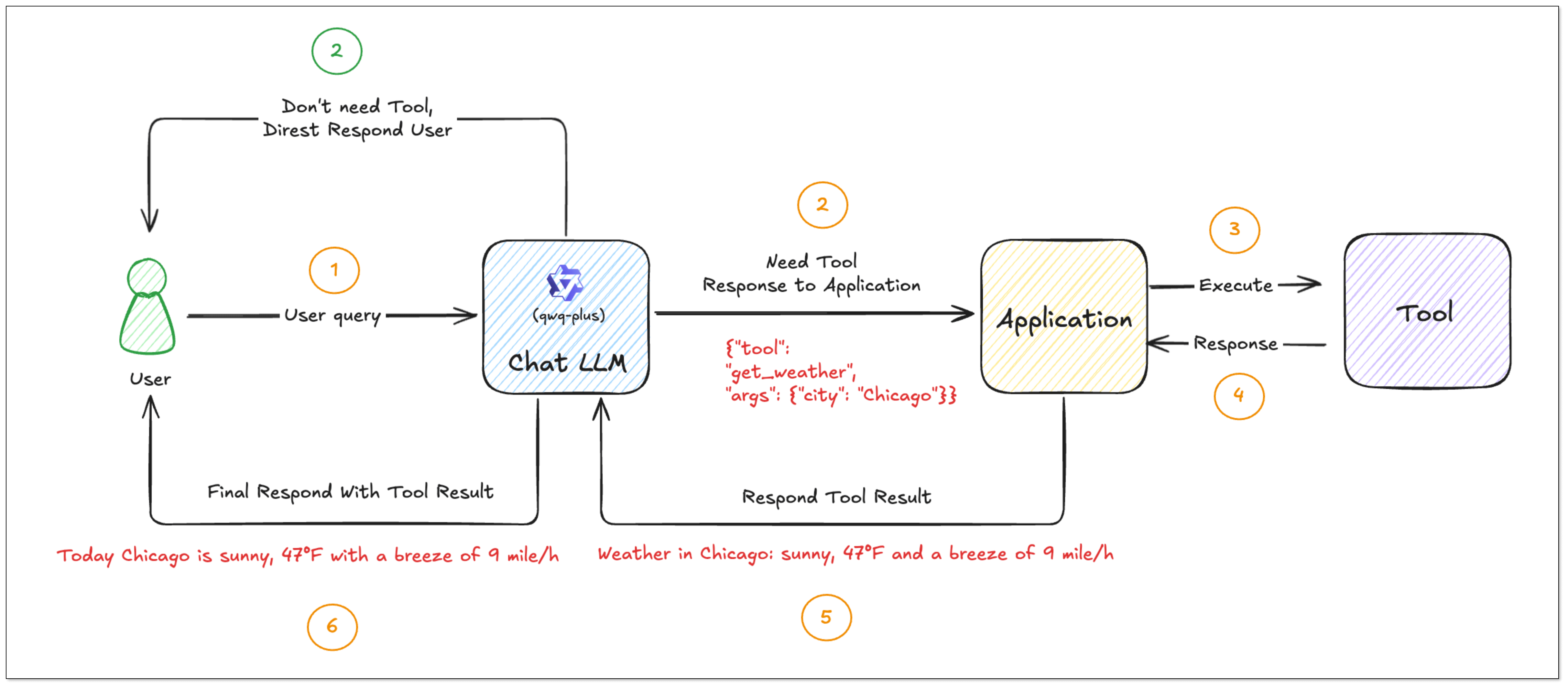 | Function Calling | Call external functions | API/databases | Real-time data interaction, automated tasks | Weather query, order processing |