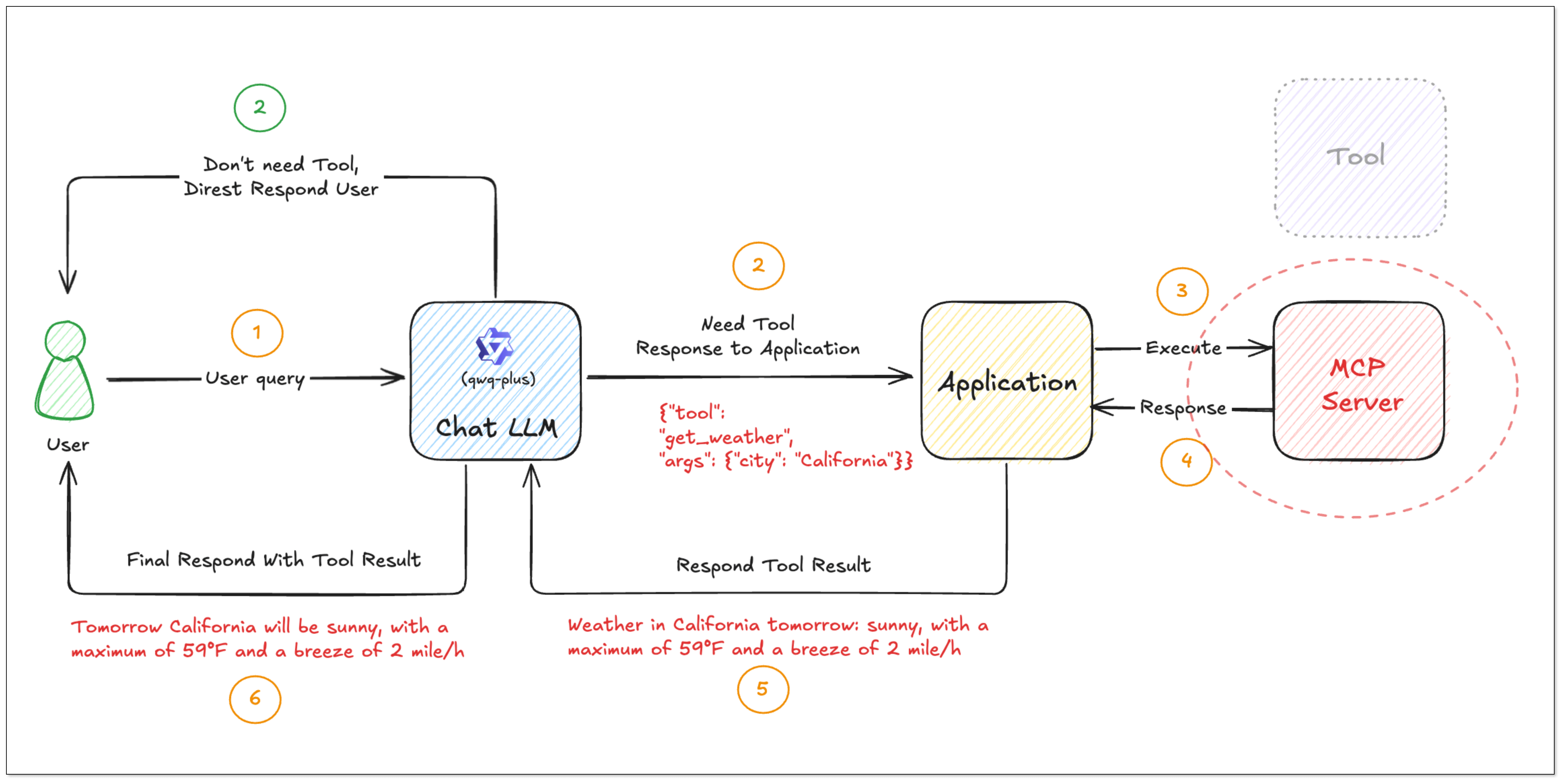 | MCP | Standard tool call protocol | Platforms (e.g. GitHub) | Cross-model and cross-platform collaboration | Intelligent workflow (such as checking weather + sending email) |