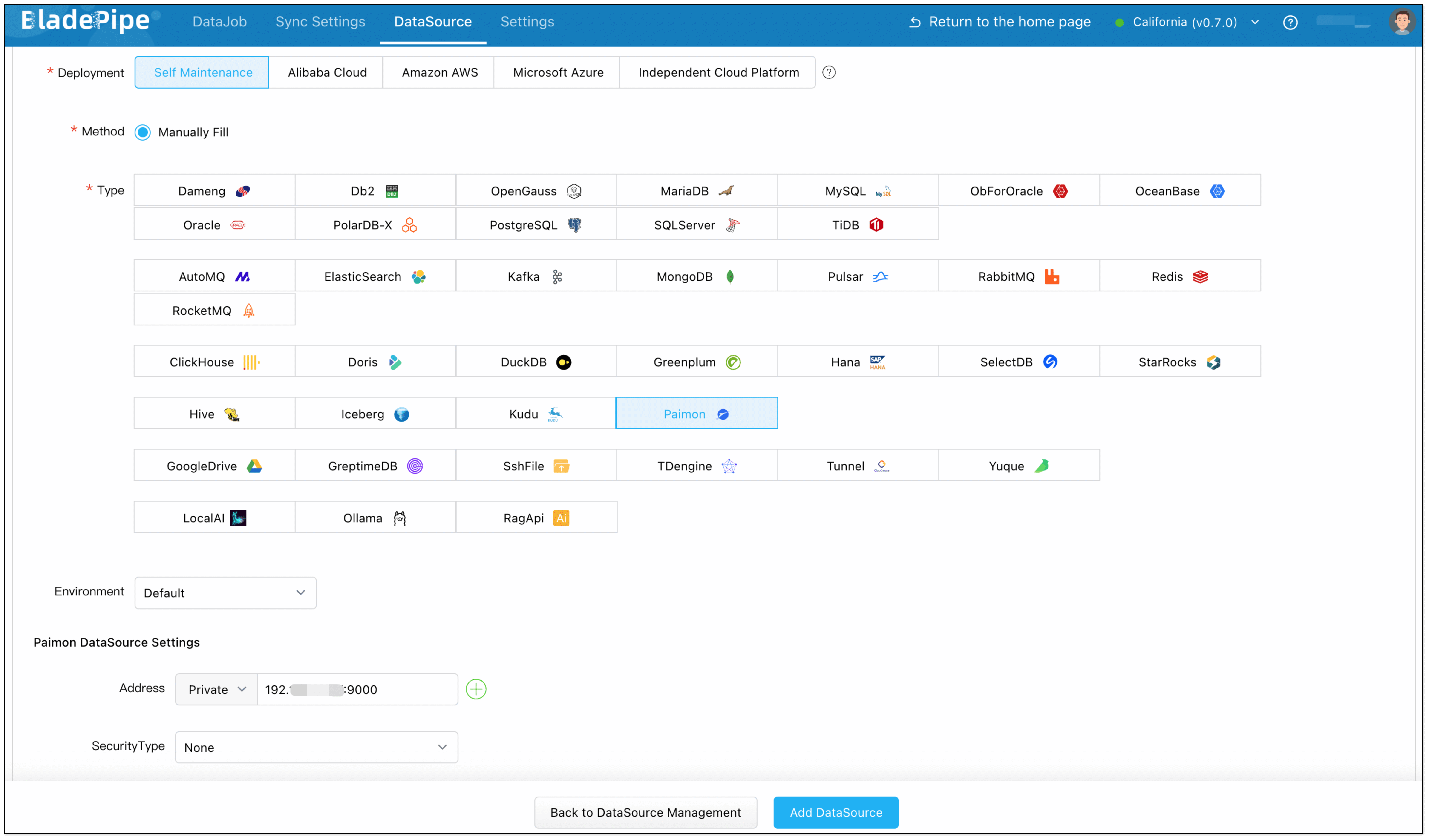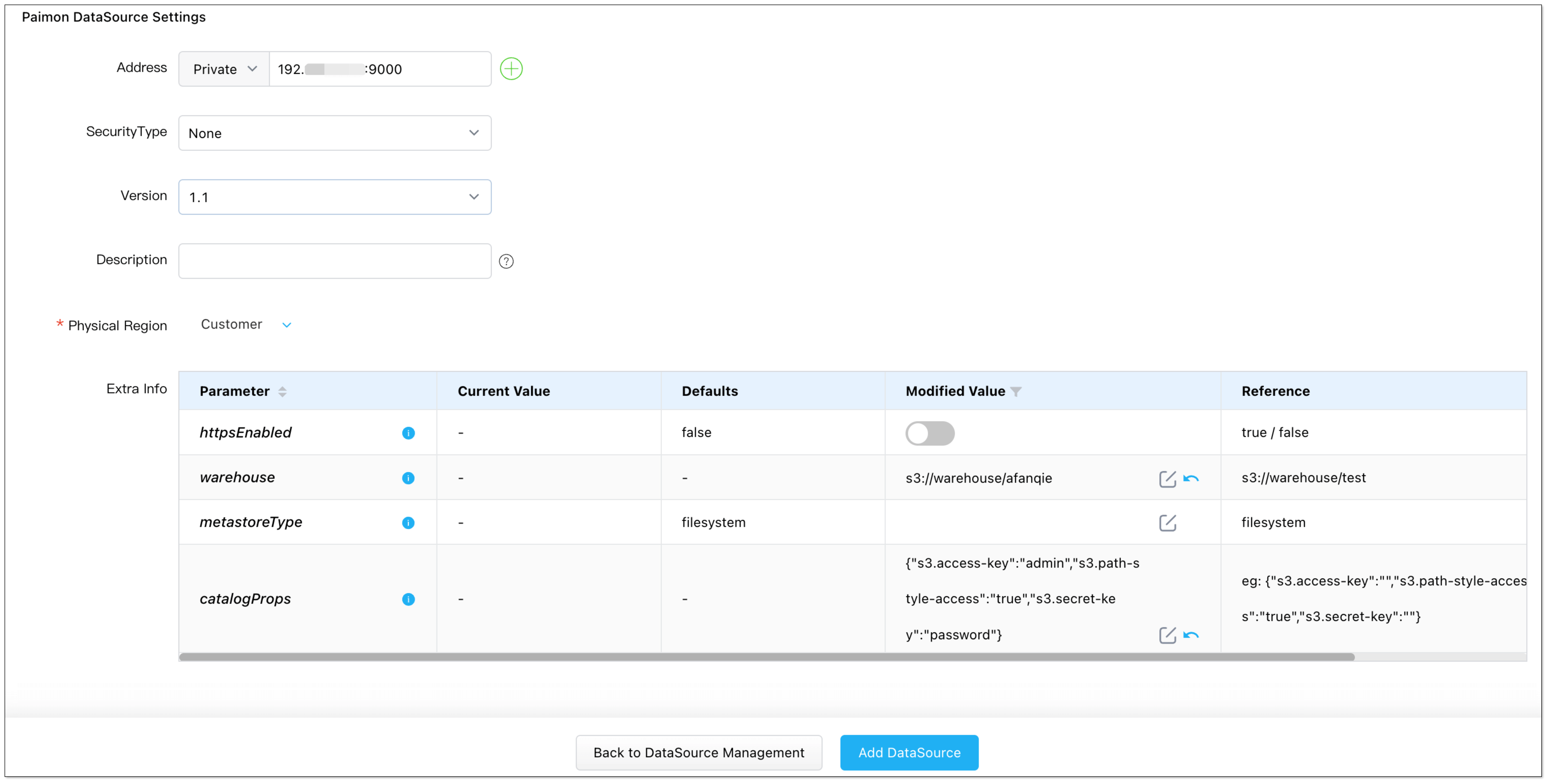 - When adding a Paimon instance, special configuration is required. See Add a Paimon DataSource.
