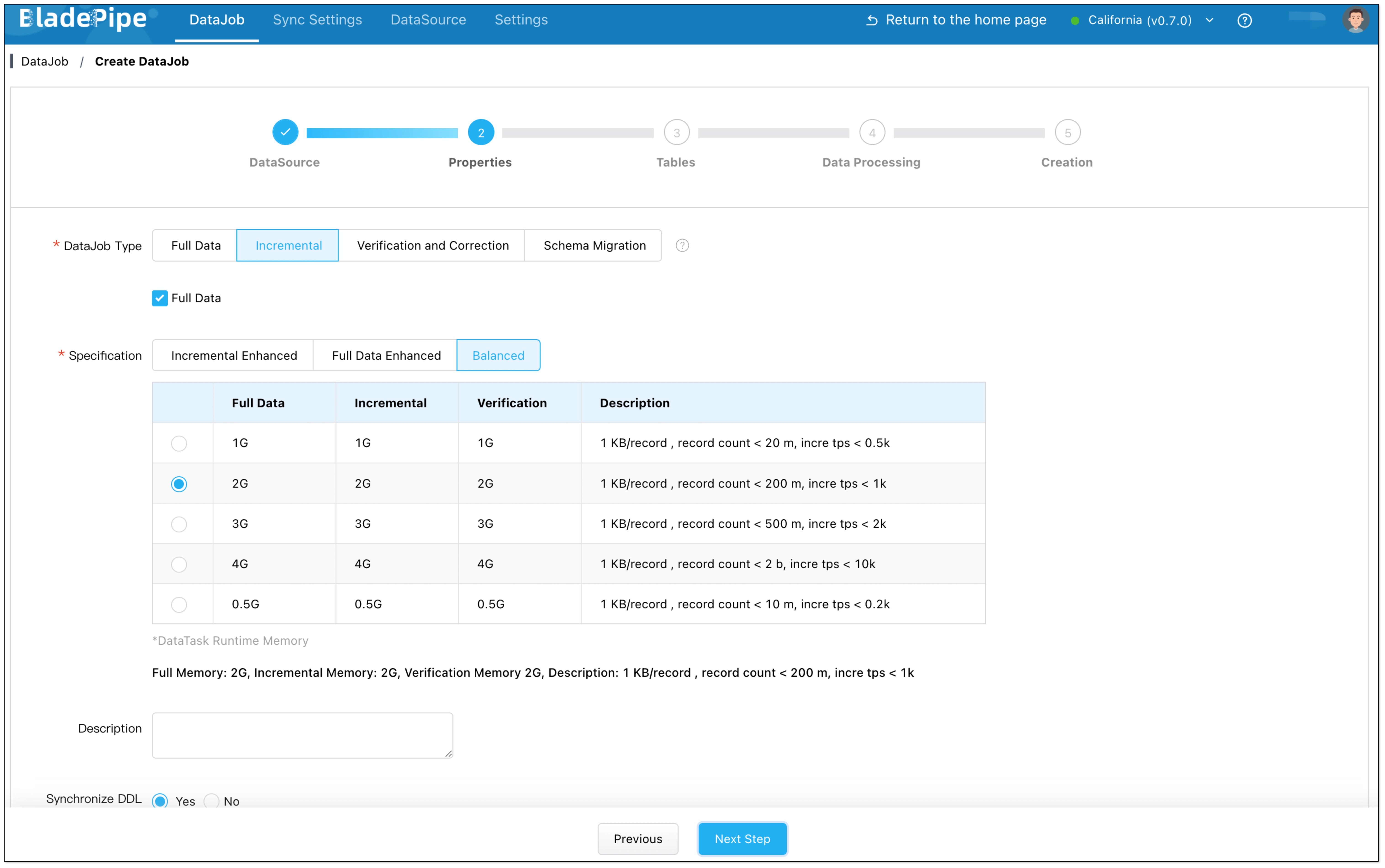 - Select Incremental for DataJob Type, together with the Full Data option.