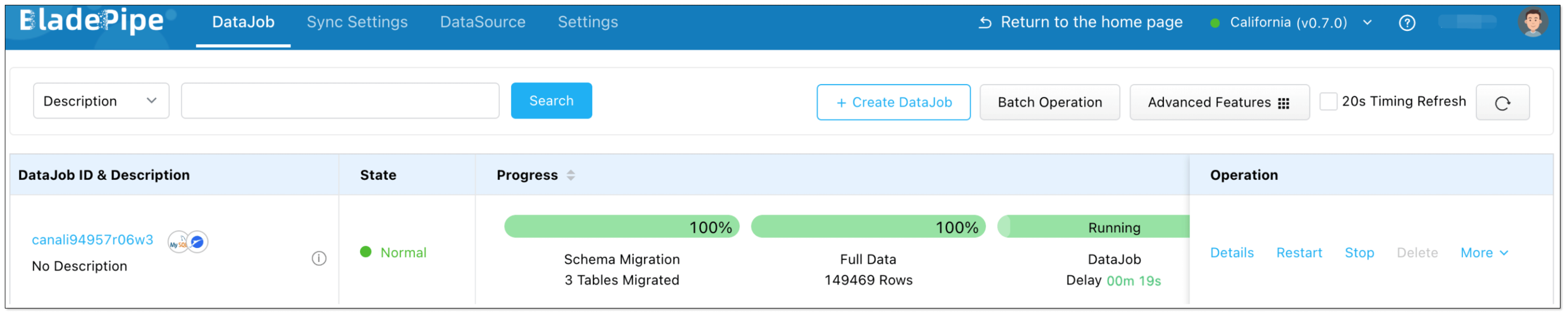 BladePipe will perform full data migration and continue capturing real-time changes to write into Paimon.