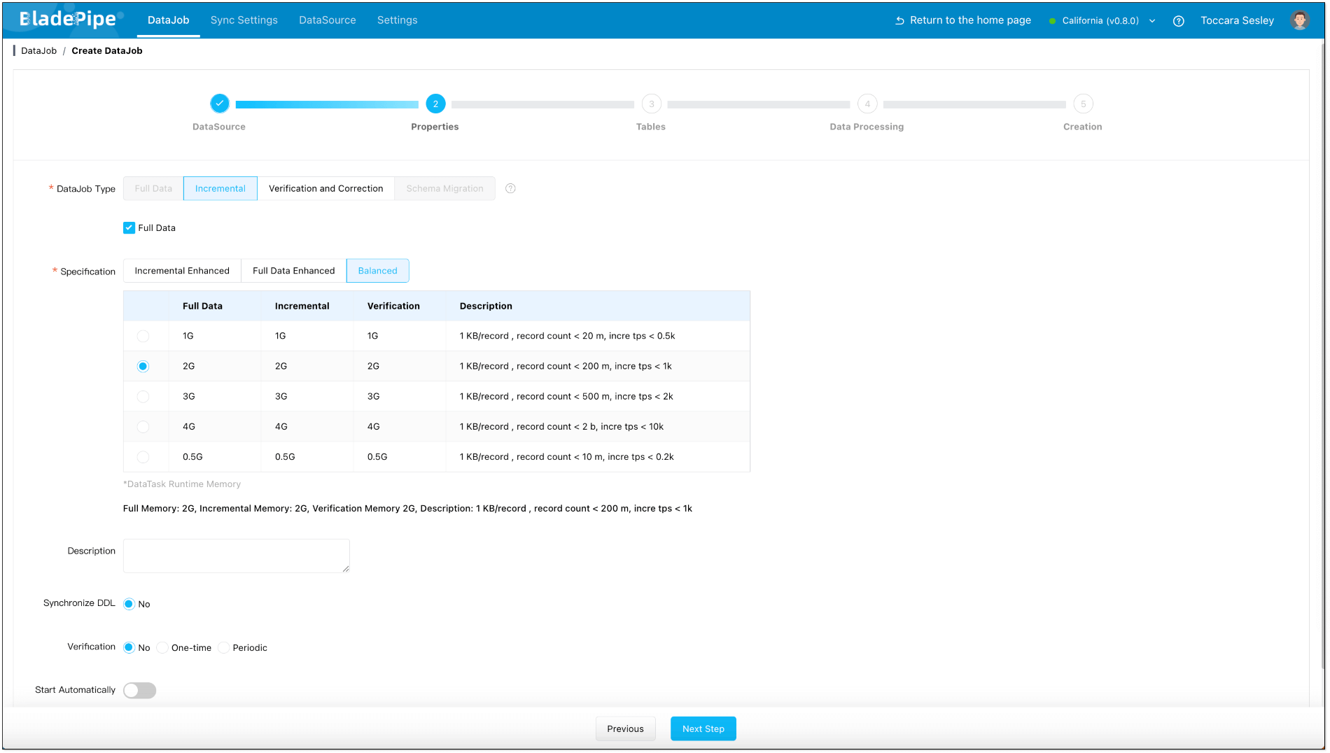 - Select Incremental for DataJob Type, together with the Full Data option.