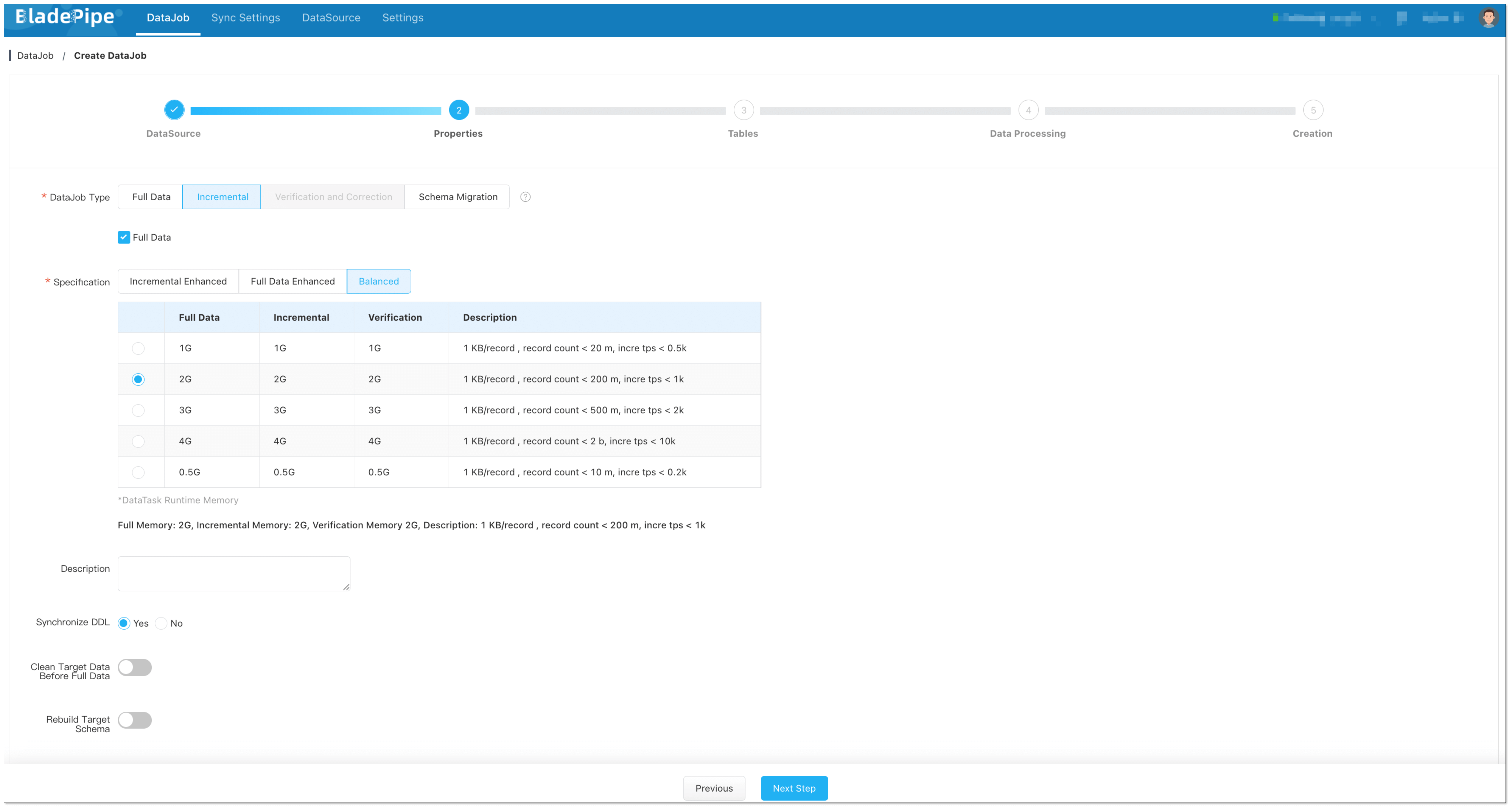 - Select Incremental for DataJob Type, together with the Full Data option.