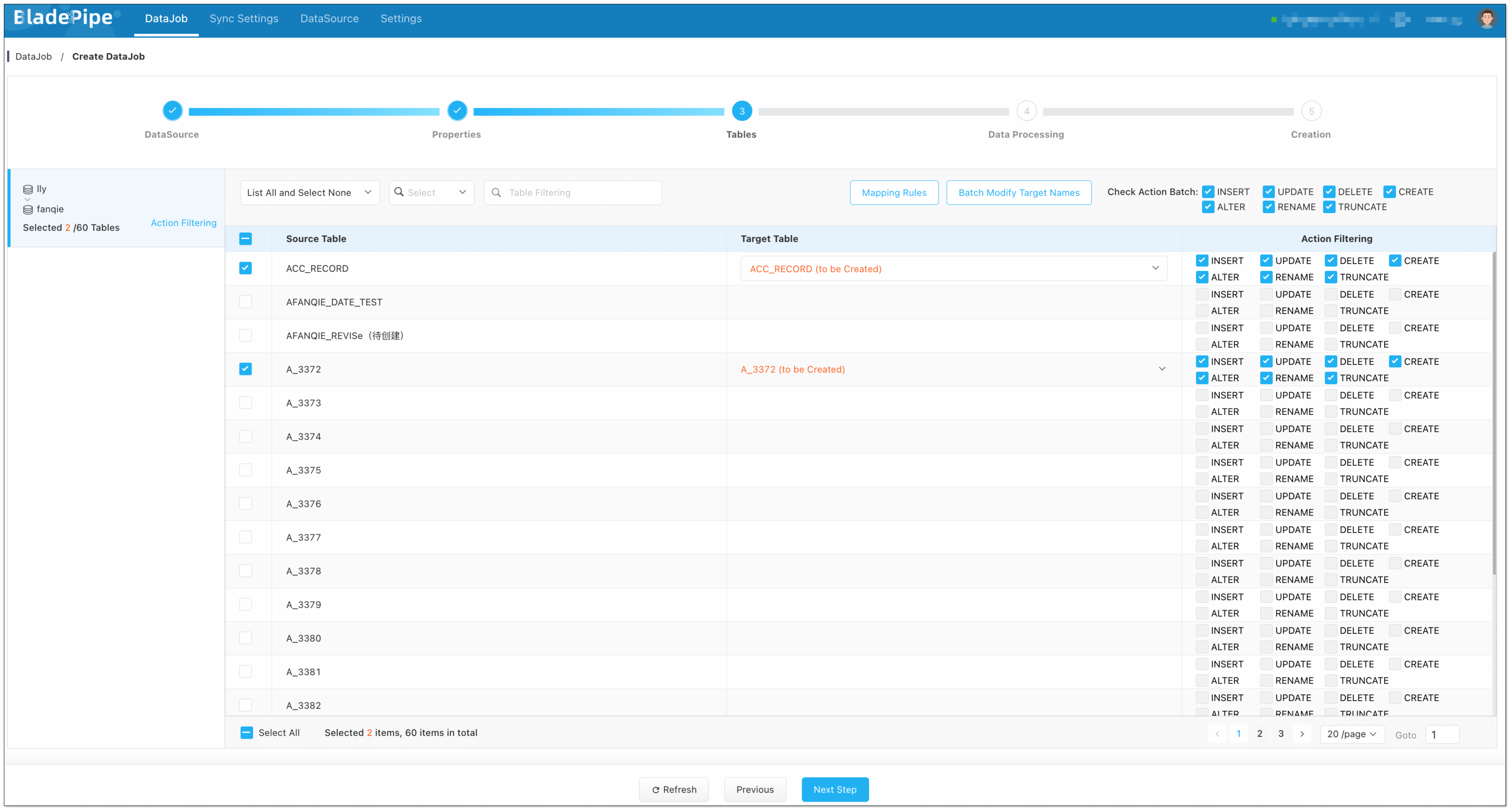 - Select the tables to be replicated.