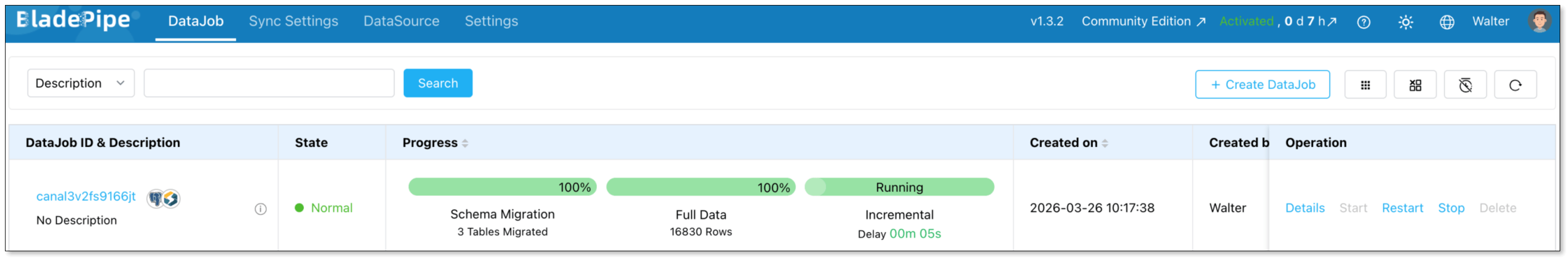 BladePipe makes the setup fast and low-friction. Instead of building and maintaining a custom Debezium-Kafka-Flink stack, you connect your sources, create a DataJob, and let it run.