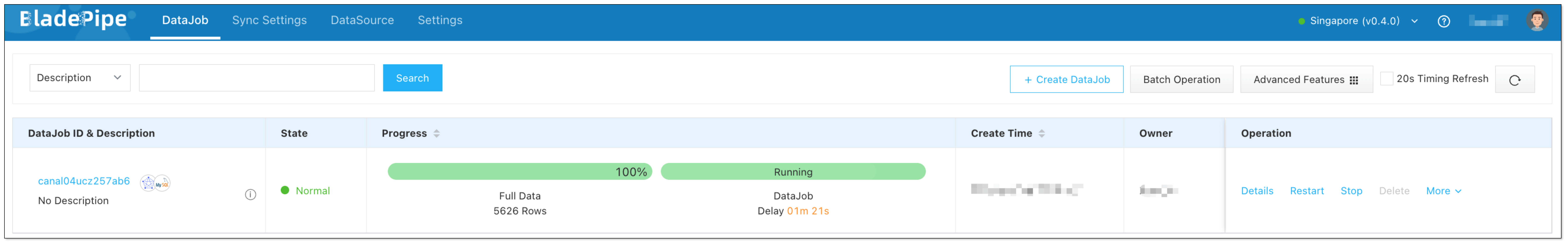 Now the DataJob is created and started. BladePipe will automatically run the following DataTasks: