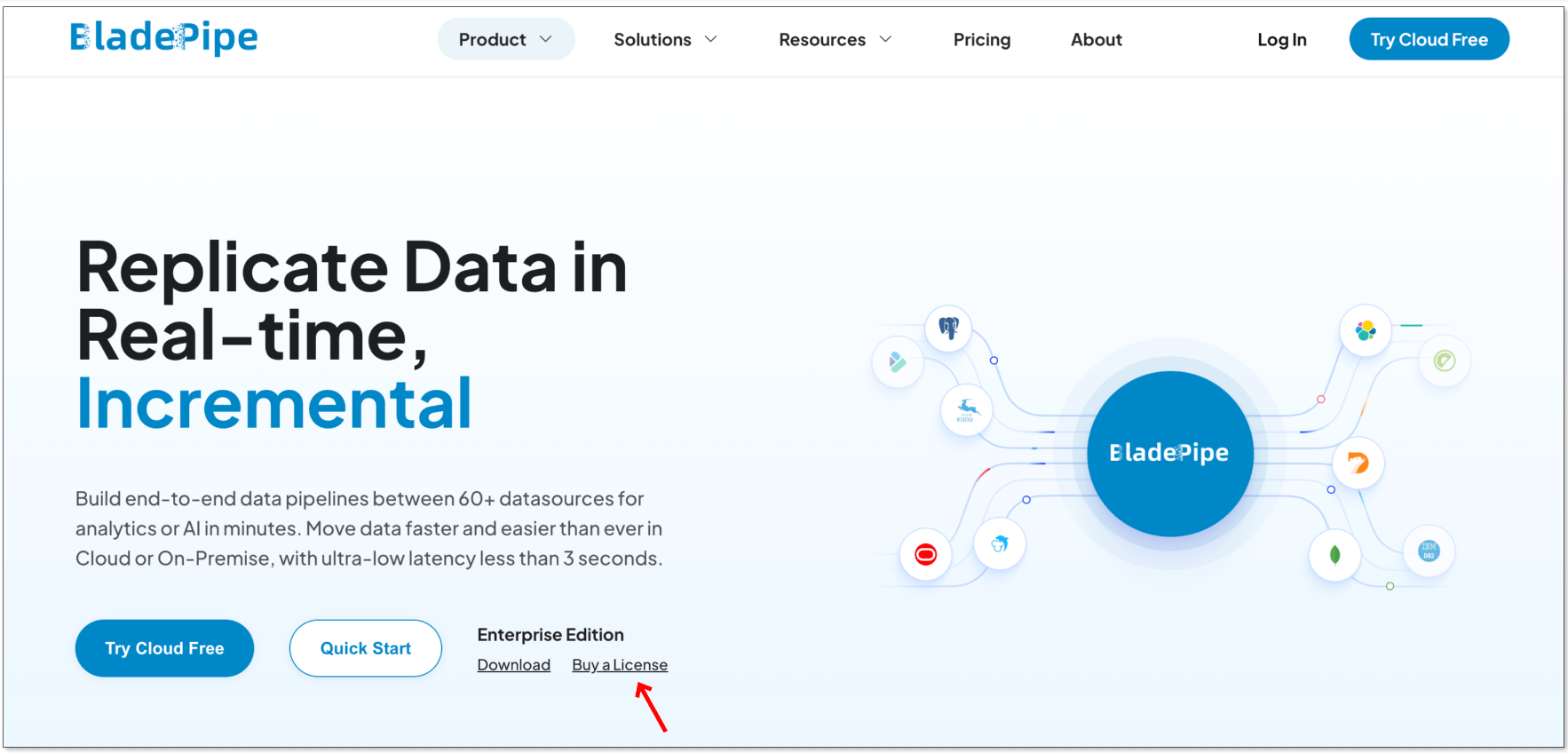 - Log in to BladePipe, and click Buy a License under Enterprise Edition.