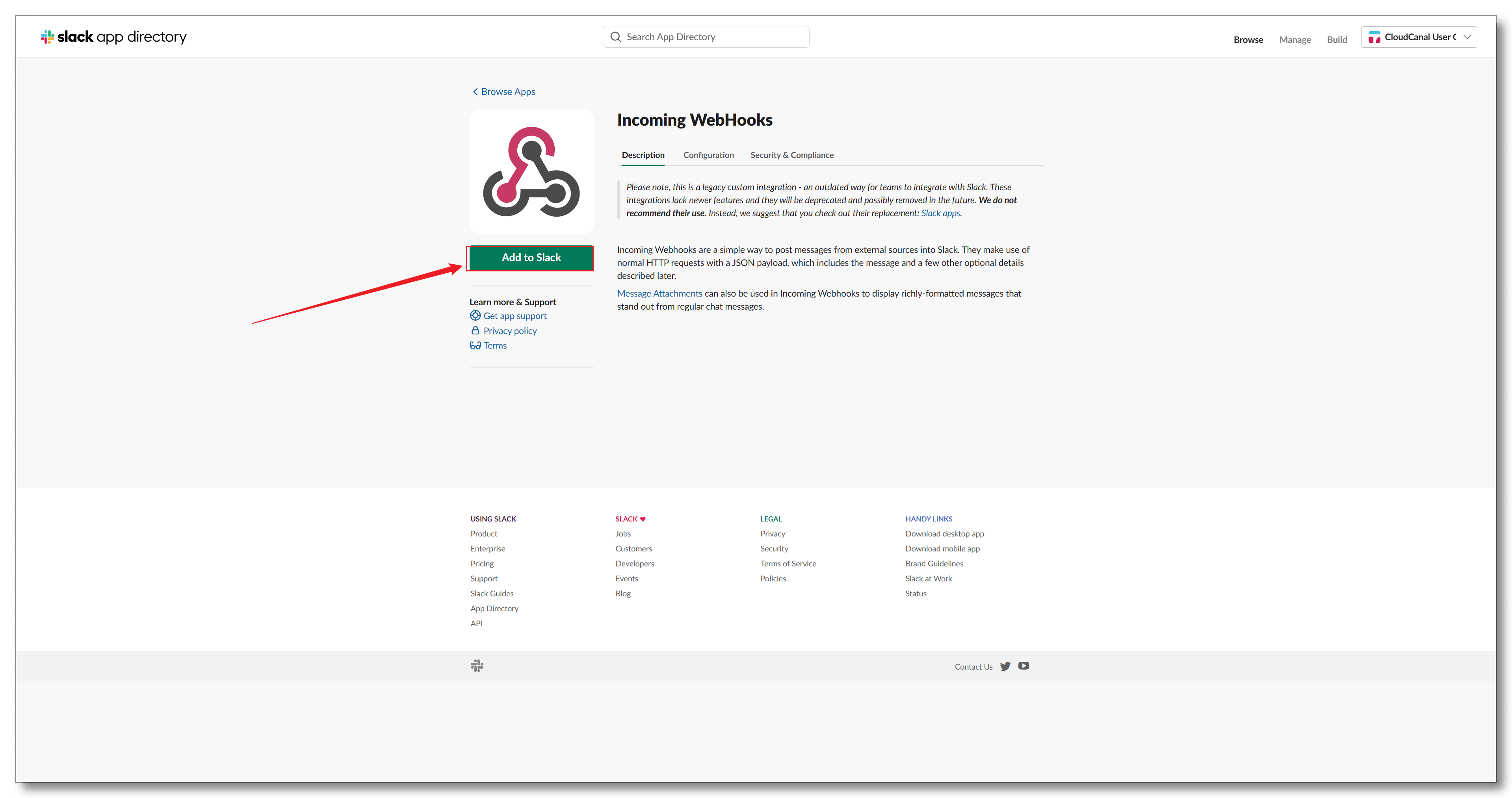 BladePipe integrates with the Incoming WebHook application on Slack channels by configuring the webhook to send alert messages to specified Slack channels. This document provides a brief introduction on how to obtain a valid webhook for use.