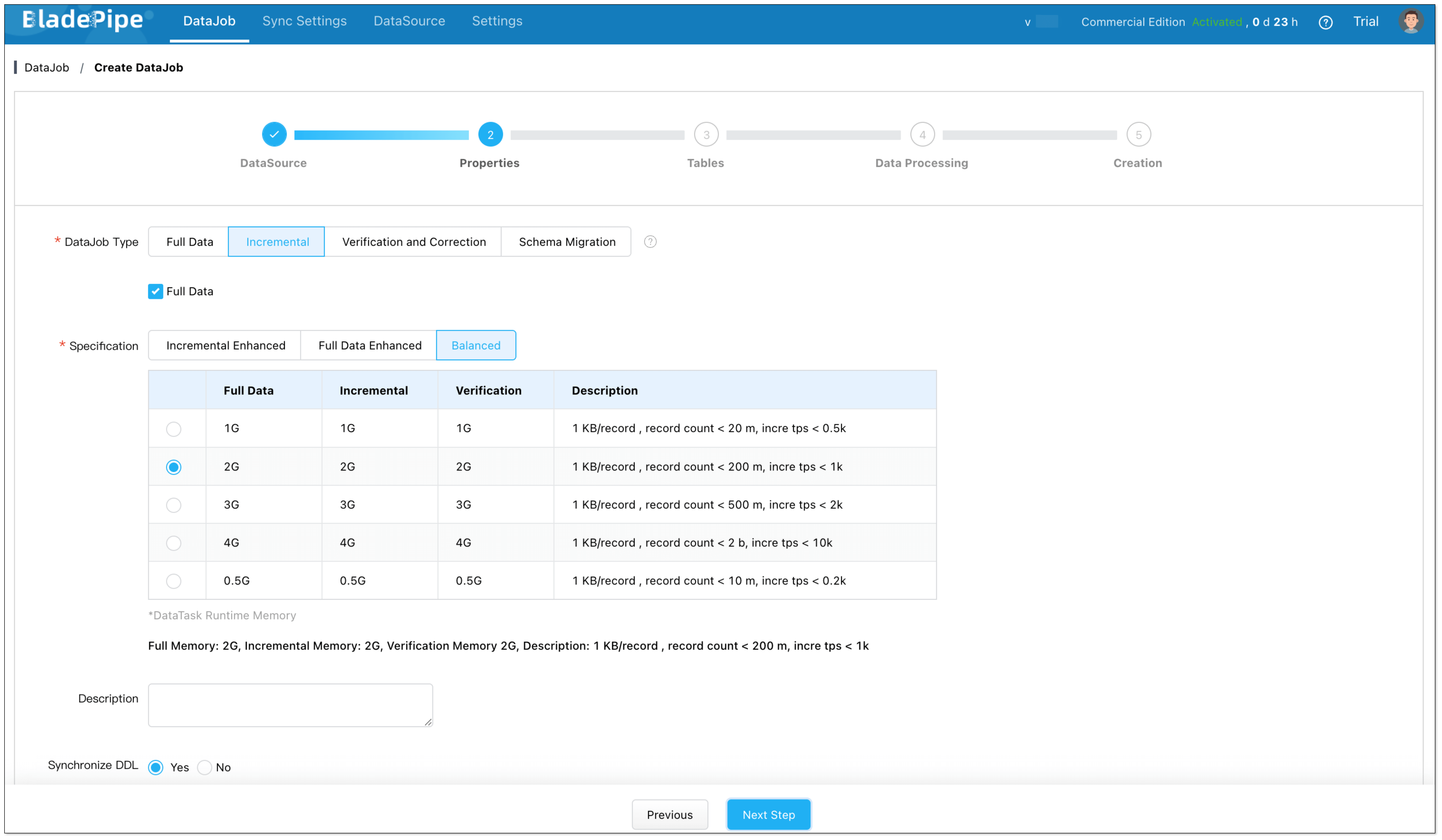 - Choose Incremental as the DataJob type, and select Full Data. Then click Next Step.
