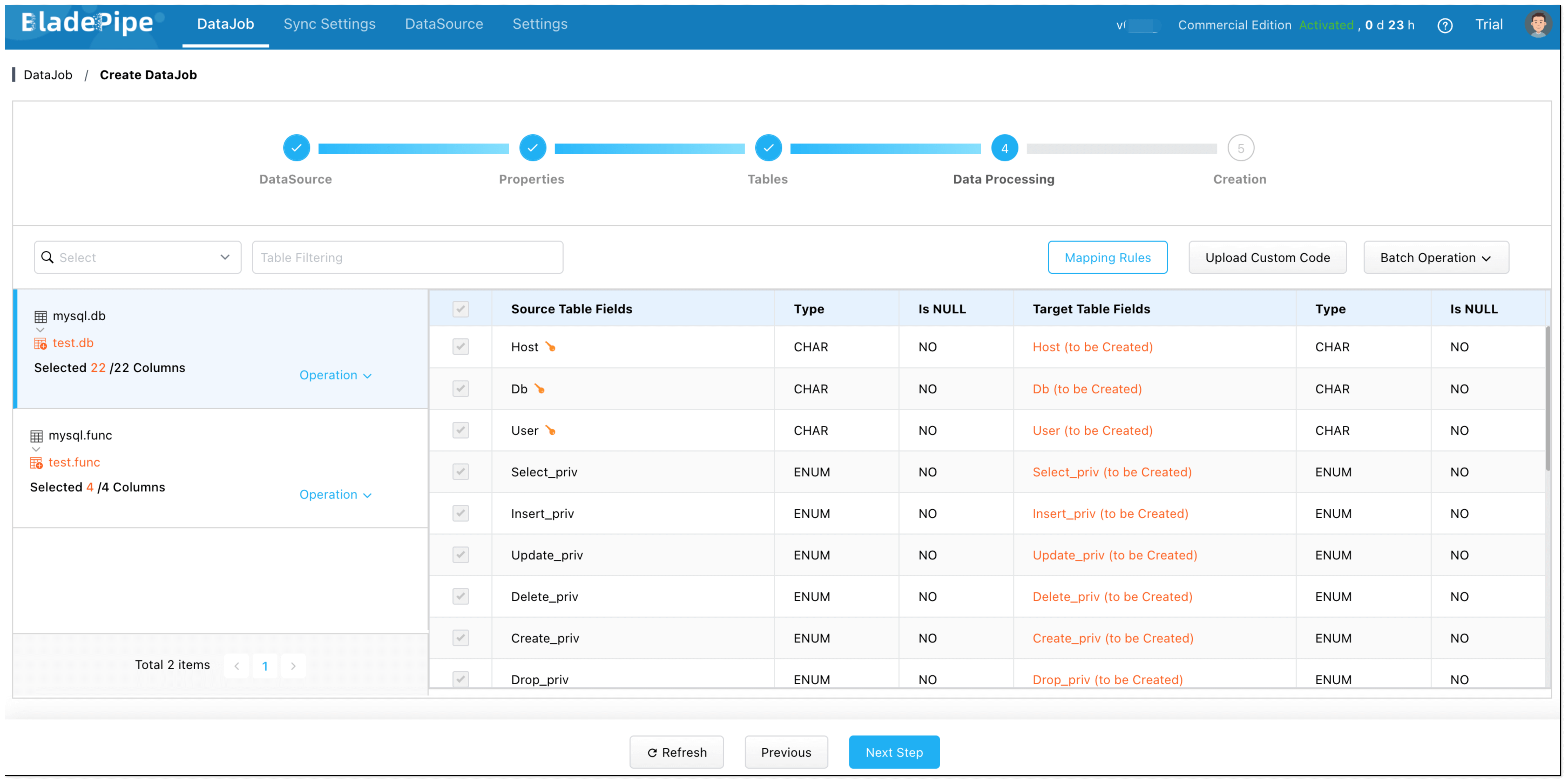 Here we take a MySQL-MySQL data synchronization as an example. For more details, see Create General DataJob.